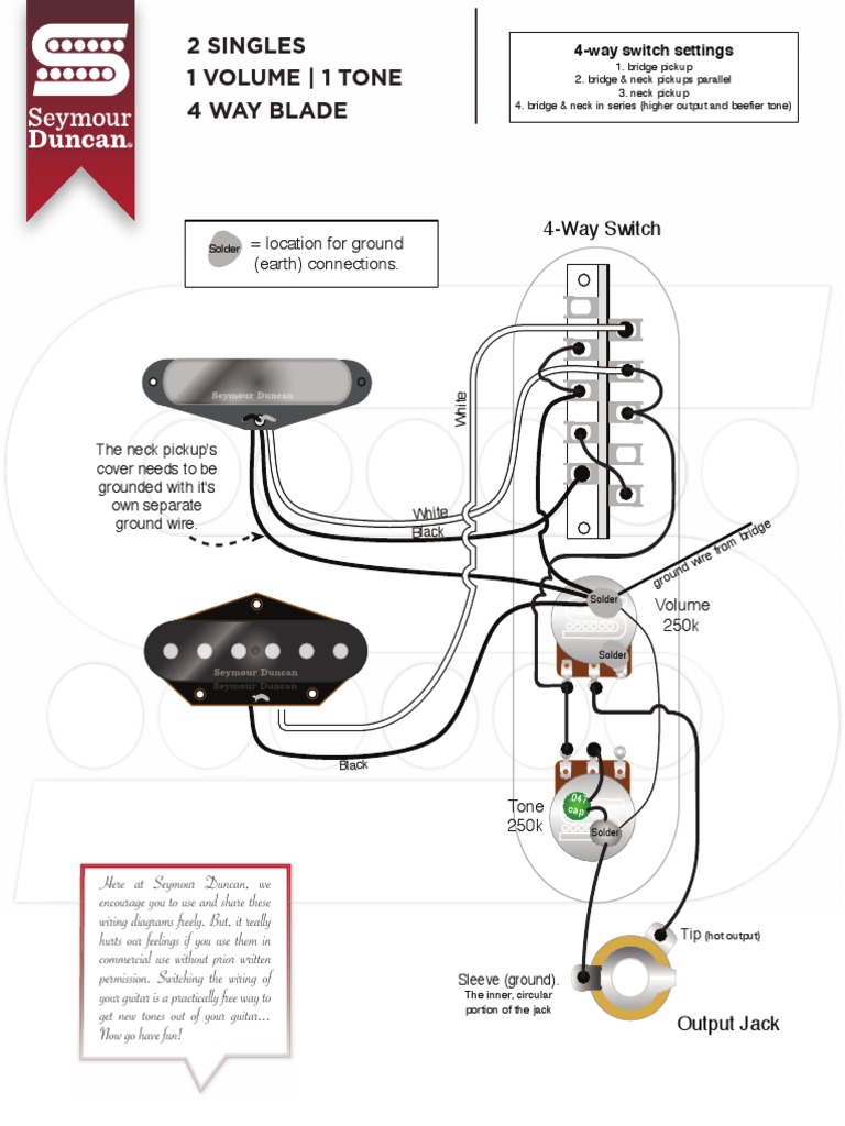 Tele wiring diagram with 2 single coils 1 volume 1 tone and the fender 4 way mod lever switch. Wiring diagram for the 4 way telecaster setup which allows all three classic telecaster switch positions plus an extra position which puts the neck and bridge pickups in series giving a fuller fatter tone. Wire connecting this tab to the black wire and grounding the cover. Everything works except this. Telecaster 4 way wiring diagrams this wiring diagram assumes you are using a metal control plate. Here is a picture gallery about telecaster 4 way switch wiring diagram complete with the description of the image please find the image you need.