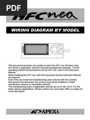 When installing the afc neo both this document and the instruction manual are required. A is applicable and ecu terminal arrangement drawings. Even in light tuning such as an air cleanermuffler replacement a shift in airfuel ratio occurs in greater or lesser degrees. Afc neo wiring diagram vafc2 wiring diagram wiring diagram. Wiring diagram by model apexi usa wiring diagram by model this document describes car models to which the afc neo product code. Wiring diagram by model this document describes car models to which the afc neo product code.