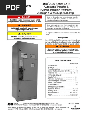 Interconnecting cord courses might be revealed around where certain receptacles or fixtures must get on an usual circuit. Field installation requires requires mounting and connection of service cables. It shows the parts of the circuit as streamlined shapes as well as the power and signal links in between the gadgets. Asco 7000 series automatic transfer bypass isolation switches are available in open transition closed transition and delayed transition designs. Wiring diagram asco 7000 series automatic transfer switch ats 600 1600 amps frame q three phase 1030072. All wiring must be made in accordance with the local codes.