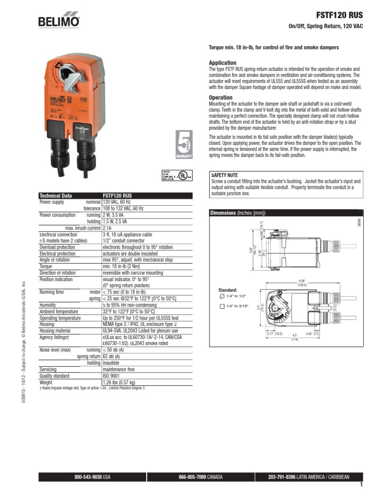 Detector or relay fs damper hot 21 165f to alarm system manual reset actuator n l2 or com parallel actuator wiring 1 hot 2 45 75 2 1 n l2 com. For actuator wiring information and diagrams refer to belimo wiring guide. Fstf120 us cw fstf1201 us cw bulk pack fstf1201 ccw ccw bulk pack fstf120 s us cw cw fstf120 s1 us cw bulk pack fstf120 s1 ccw ccw bulk pack fstf24 s1 us cw bulk pack ul file xapxe108966 torque 18 in lb 250f for 30 min for fire and smoke dampers application the type fstf spring return actuator is intended for the. Power consumption and input impedance must be observed. Typical specification onoff fi re and smoke spring return damper actuators shall be direct coupled type. Belimo aircontrols u s a inc.