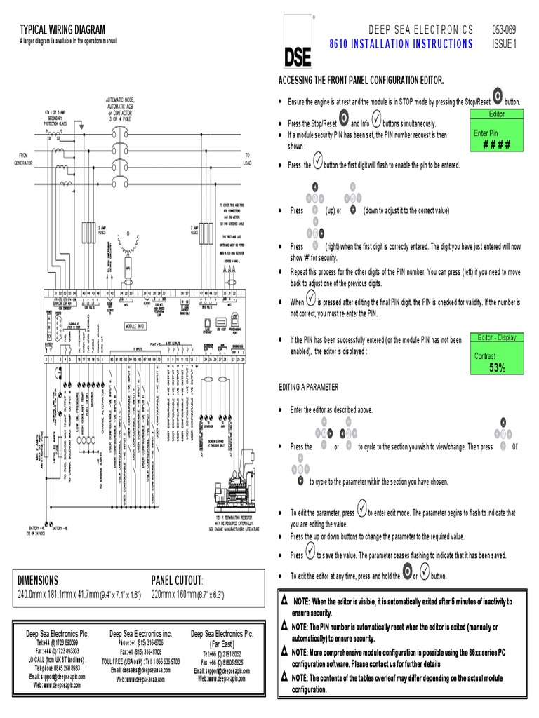 Ensure to configure the dse8610 controller to suit the required topology. Dse8610 mkii operator manual 057 254 issue. A larger version of the typical wiring diagram is available in the products operator manual refer to dse publication. Tel44 01723 890099 fax. Typical wiring diagram a larger diagram is available in the operators manual. Single phase without earth.