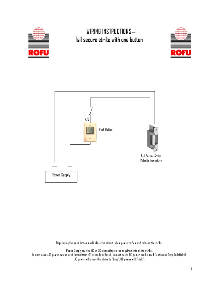 The von duprin 6300 surface mounted electric strike is only available as fail secure. Wiring instructions fail secure strike with one button power supply push button no fail secure strike polarity insensitive depressing the push button would close the circui t allow power to flow and release the strike. The next step is to have a fail safe method of cutting the power to the lock to ensure the where access control equipment is fitted to a fire escape door which includes an wiring break glass units and fire alarm interfaces the fib provides a switching. Fast trac form. Unlike fail safe fail secure means that if the power is interrupted or fails the door stays locked. An understanding of basic wiring diagrams fail safe and fail secure.
