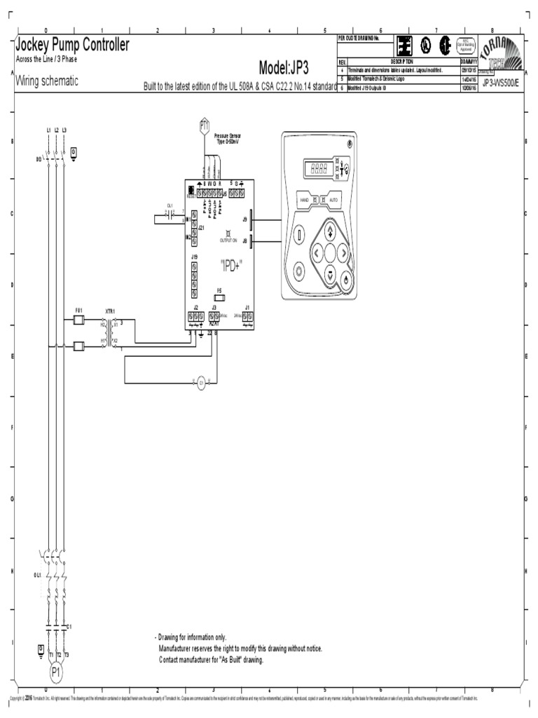 8 pjpc instructions jockey pump controllers single phase wiring diagram timer is optional and controller will function without it installed. Three phase variable speed jockey pump controller. Model jp3 jockey pump controller note. The above capture is an age old drawing covering sensing lines for a jockey pump and fire pump controller. Options chosen from this page are not electrically represented on the wiring schematics in this submittal package. A4 elapsed time meter time totalizer a5 motor run alarm contact a6 loss of power alarm contact a7 overload or short circuit alarm contact d12 ce mark cw externally mounted wetted parts.