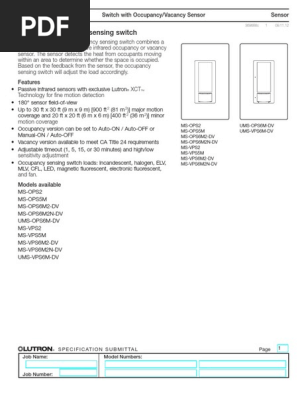 Ms ops2 ms ops5m and ms ops6m2 dv. Maestro sensor switch switch with occupancy and vacancy sensor control voltage load type minimum load maximum load neutral connection required not ganged end of gang middle of gang ms ops2 ms vps2 120 v lighting1 2 0 a 2 a 2 a 2 a no ms ops5m ms vps5m 120 v lighting1 2 3 0 a 5 a 5 a 5 a no fan3 0 a 0 hp 3 a 110 hp 3 a 110 hp 3 a. Lutron will at its option repair or replace any unit that is defective in materials or manufacture within five years after purchase. Misuse abuse or damage from improper wiring or installation. Press and hold onoff and auxiliary buttons simultaneously. 3 way installation with standard mechanical switch 120 v2 4 ops6m2n dv vps6m2n dv.