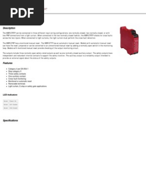 Reset in case of fault in case of any fault the internal relay circuit forces a lock out of the unit. At demand of the safety function and in case of any fault the safety outputs are deenergized within the specifi ed response time. Guardmaster safety relays catalog numbers 440r s13r2 440r s12r2 440r d22r2 440r d22s2 440r em4r2 440r em4r2d user manual original instructions. Guardmaster msr127tp safety relay 440r n23125 guardmaster msr127tp safety relay 440r n23126 guardmaster msr127tp safety relay 440r n23130 guardmaster msr127tp safety relay 440r n23131 guardmaster msr127tp safety relay 440r n23132 msr127rp safety monitoring relay 24v acd 440r n23135s. Our msr100 single function safety relays support a wide variety of input devices and output configurations. Safety relays 4 39 monitoring safety relays minotaur msr127rptp product selection dimensionsmm inches block diagram typical wiring diagrams inputs safety outputs auxiliary outputs terminal s power supply type reset catalogue number 1nc 2nc or light curtain 3 no.