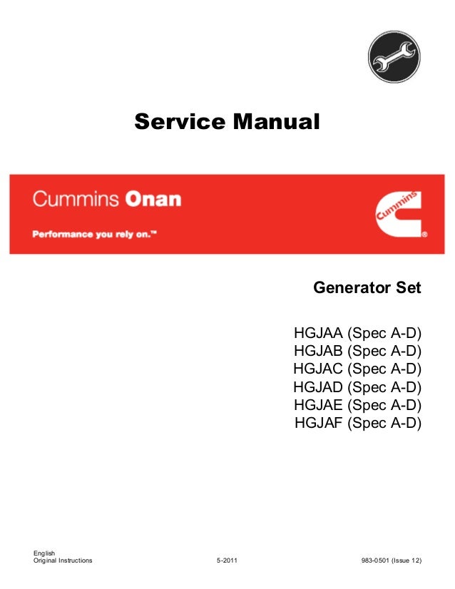 Cummins Onan Hgjae Generator Set Service Repair Manual