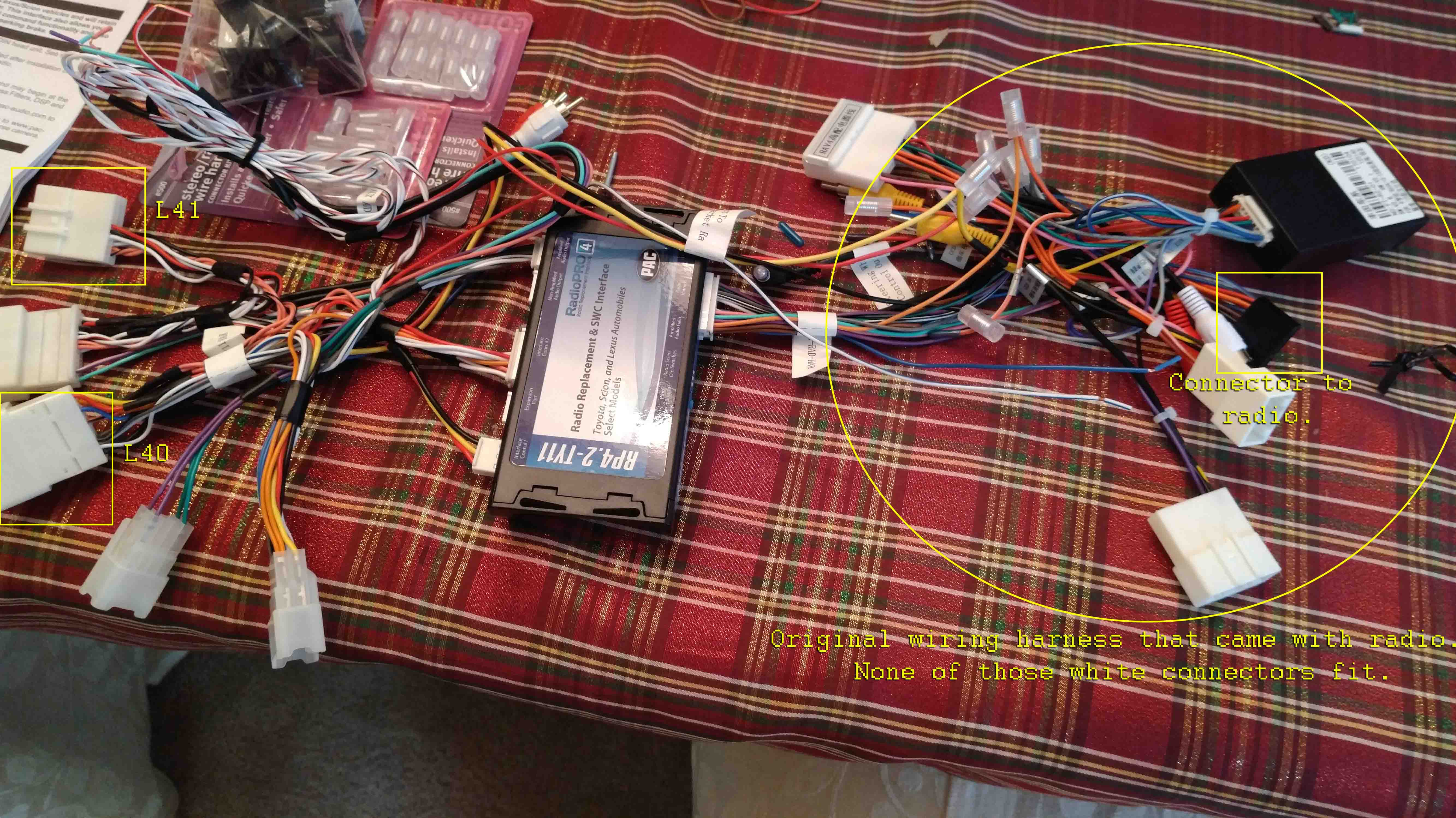 Interface connectors interface connector 3 plug interface connectors 1 2 and 4 into the appropriate port on the rp42 ty11 interface using the diagram on page 1 or the label on the bottom of the rp42 ty11. The radiopro rp42 ty11 radio replacement interface is designed for 2001 2017 toyota lexus and scion vehicle models.