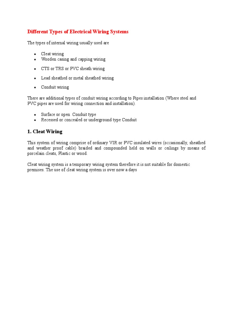 Generally pvc or vir insulated wires are carried through the casing enclosure and capping is. 1 casing capping type wiring system. Casing enclosure made of wood or plastic capping made of wood or plastic casing and capping joints. This is one of the simple forms of electrical wiring systems. In todays world after post introduction of the conduit or sheathed wiring system it is preferred for the wiring system. Casing is a rectangular strip where the cables run through it having grooves.