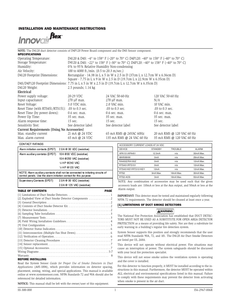 Wiring wire the rts2 as shown in figure 3 for innovairflex 4 wire conventional duct smoke detectors. The rts2 will default to sound in a temporal pattern. Installation per ulc s524 02 temporal sounder the rts2 accessory provides the option of sounding a continuous or temporal pattern. 110ma or less at the aux output and 50ma or less at the alarm output. This detector must be tested and maintained regularly following nfpa 72 requirements.