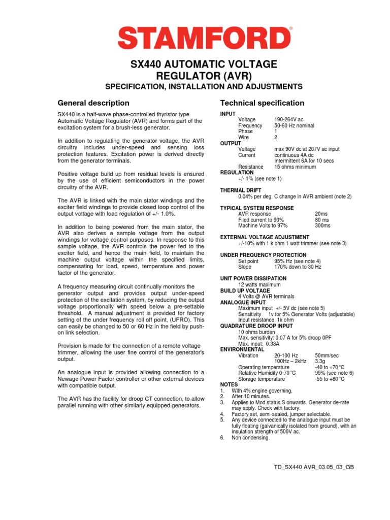 Keep the screws for use with the new avr. Preparinq the new as440 avr step 2 preparing the new as440 avr. Tdsx440gb050302 sx440 automatic voltage regulator avr specification installation and adjustments general description technical specification sx440 is a half wave phase controlled thyristor type automatic voltage regulator avr and forms part of the excitation system for a brush less generator. Show footer hide footer. Keep the screws for use with the new avr. Link terminals on the new.