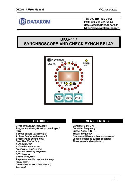 Dkg 117 Synchroscope And Check Synch Relay