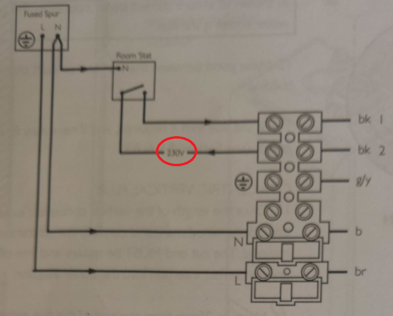 There are three unlabelled isolated parking slots for unrequired wiring from the thermostat which is being replaced. The wiring diagram on the back of the device shows the wiring for the relay operation three isolated parking slots for excess wiring from the thermostat which is to be replaced and three low voltage terminals for analog and bus connection.