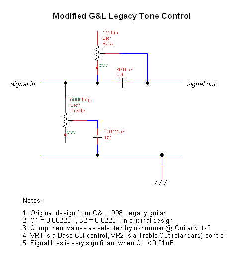 Remember that the values of the two pots are fixed so you cant experiment with them. Wiring diagram for the modified tbx tone control.