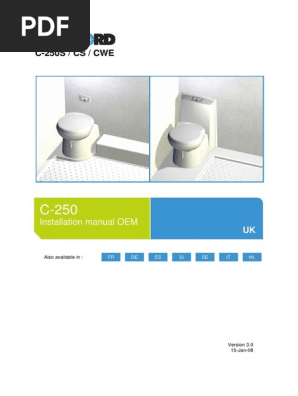 Position the toilet against rear wall and apert ure wall see diagram 17. Grey wire is positive output connect to positive side of pump remark.