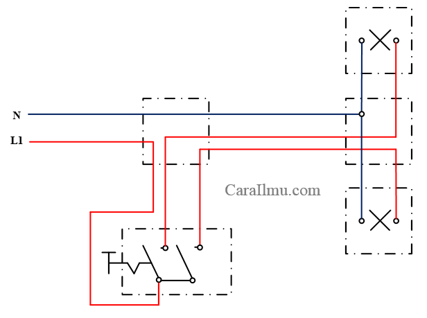 6 wiring diagram 1. Berikut adalah wiring diagram dari saklar silang saklar intermediate saklar tukar dengan mengacu pada diagram lokasi pertama diatas yaitu mengendalikan satu lampu dari 4 tempat. Wiring diagram saklar hotel saklar tukar berbeda halnya dengan diagram lokasi pada wiring diagram atau diagram pengawatan anda baru akan melihat secara aktual berapa kabel sebenarnya yang terhubung dalam pipa instalasi saklar tersebut sekaligus anda bisa menganalisa prinsip kerja dari instalasi setelah rangkaian instalasi tersebut selesai. Dengan diagram pengawatan ini anda juga bisa menganalisa prinsip kerja dari instalasi setelah rangkaian instalasi tersebut selesai. Daniel 7 mei 2016. Apabila 1 saklar nyala yg manapun a on atau b on wh nyala.