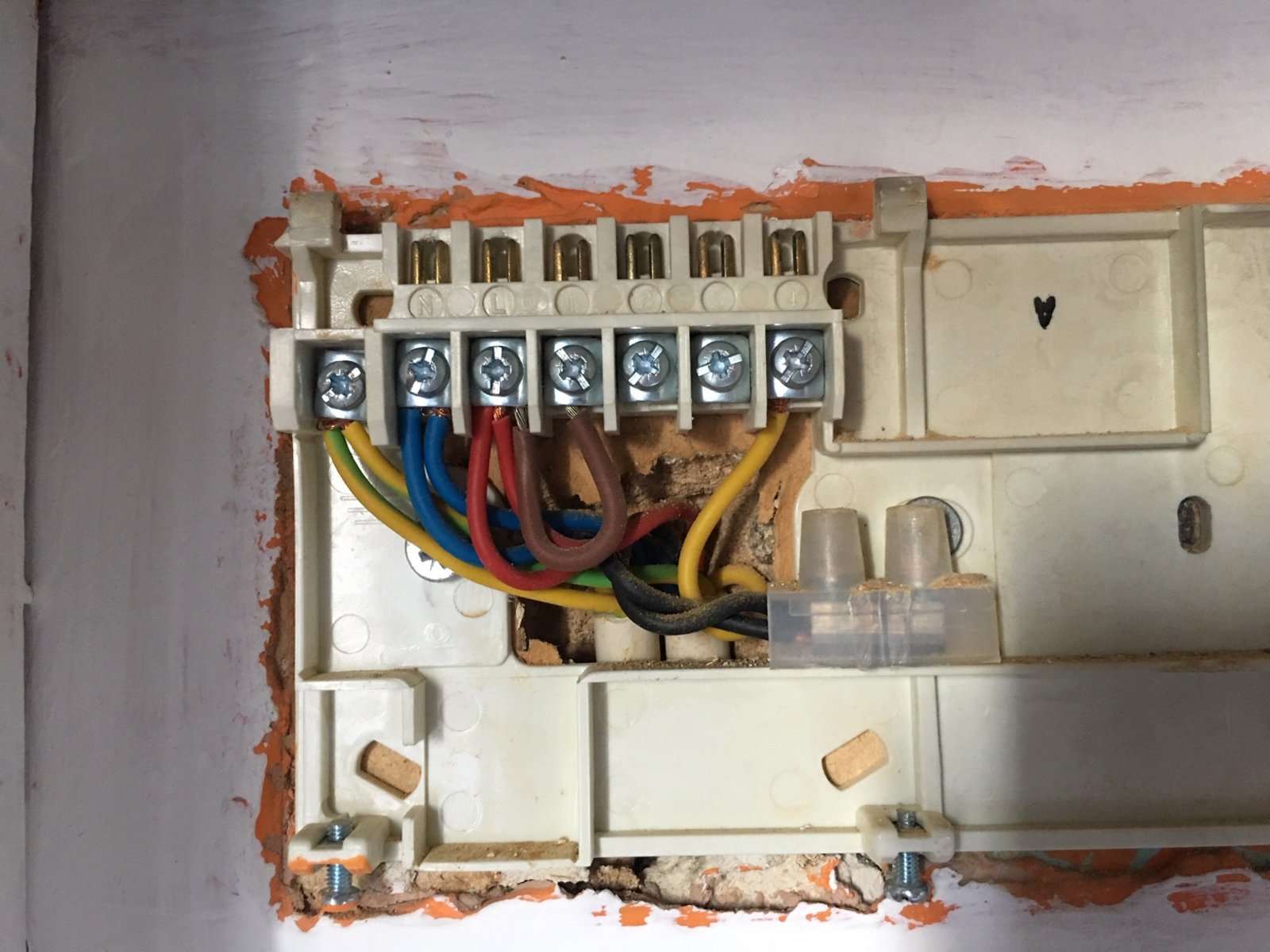 Now fit the wiser heat hub on to the wallplate tighten the securing screws and turn the power back on.